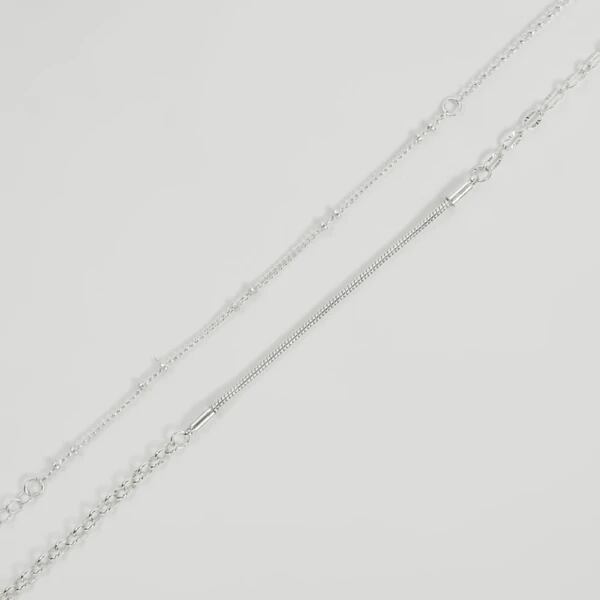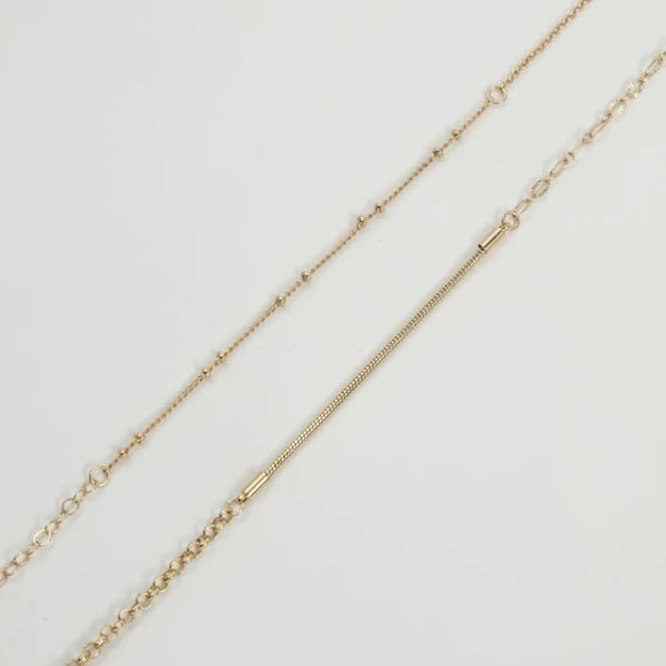 異なる数種類のチェーンを組み合わせた、上品なセットネックレス。