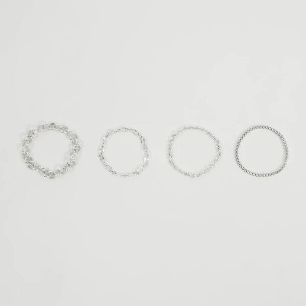 異なるチェーンデザインのリングを4本セットにした、上品で洗練されたセットリング。
