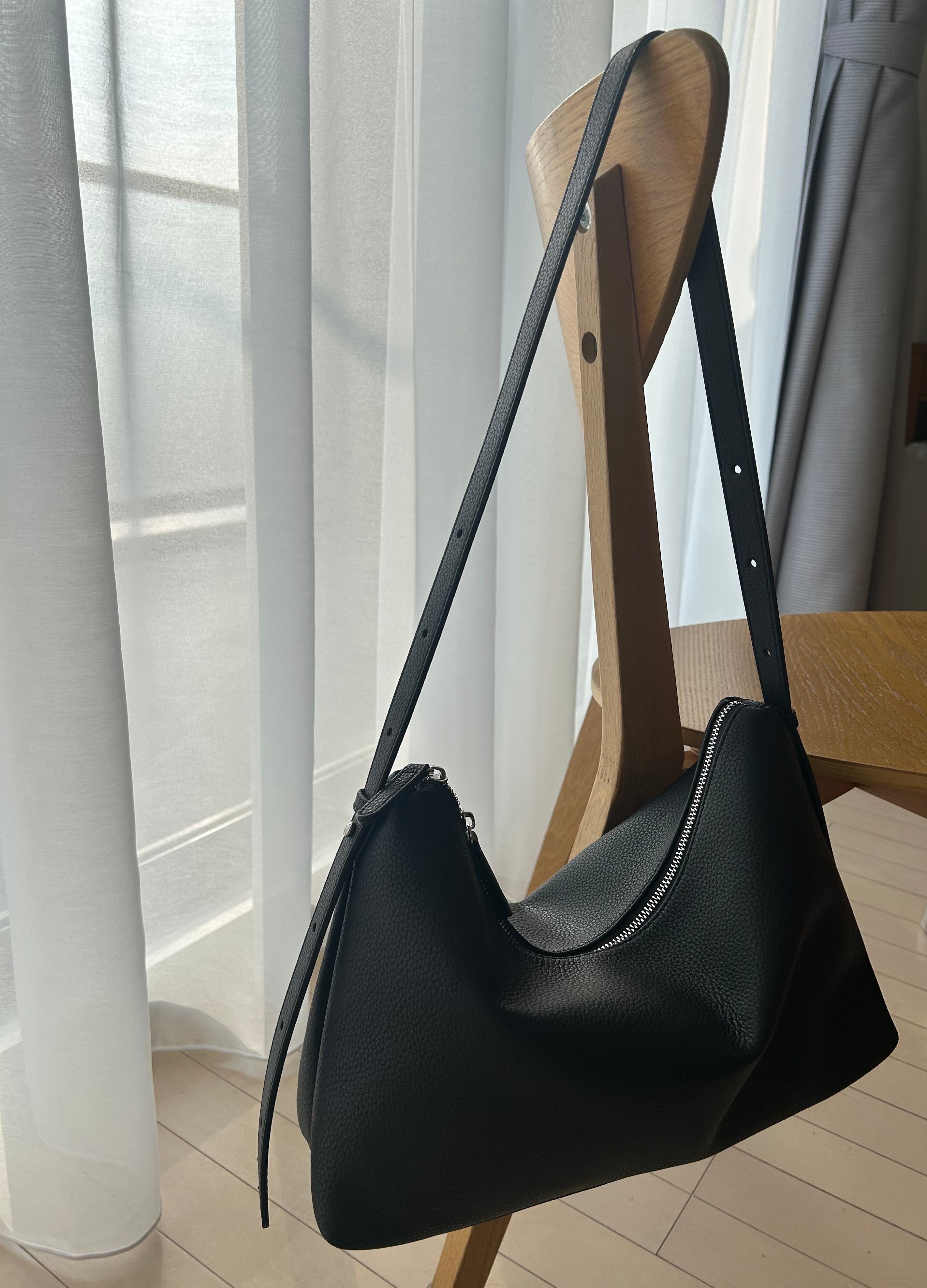 上から押しつぶしてクタッと持てる、こなれ感のあるフォルムも魅力です。