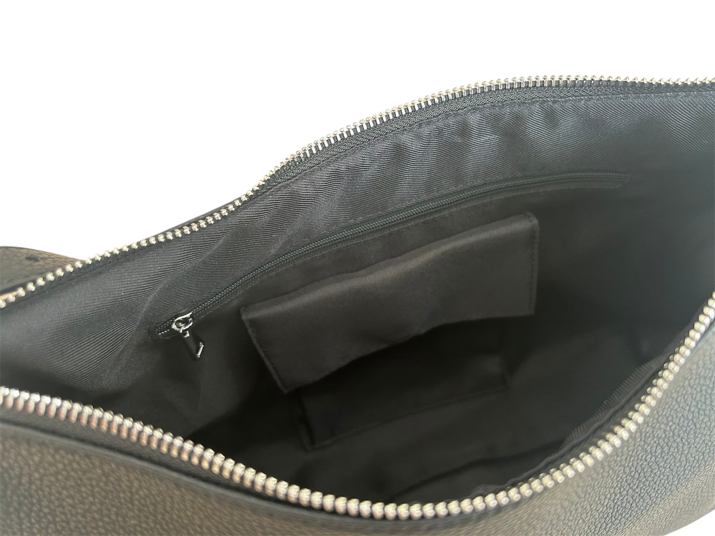 長さ調整可能なショルダーストラップで、肩掛けにも斜めがけにも対応します。